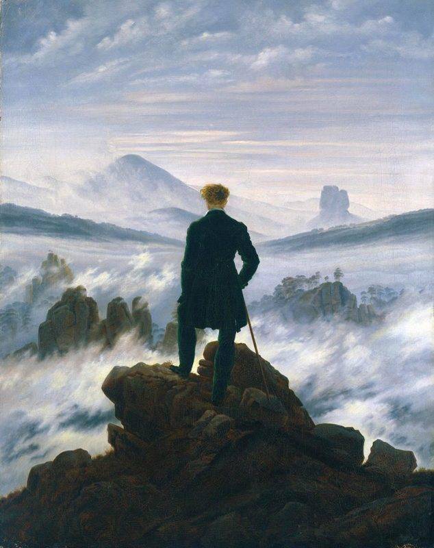 Rătăcitor deasupra mării de ceață de Casper David Friedrich, 1818, prin Kunsthalle Hamburger