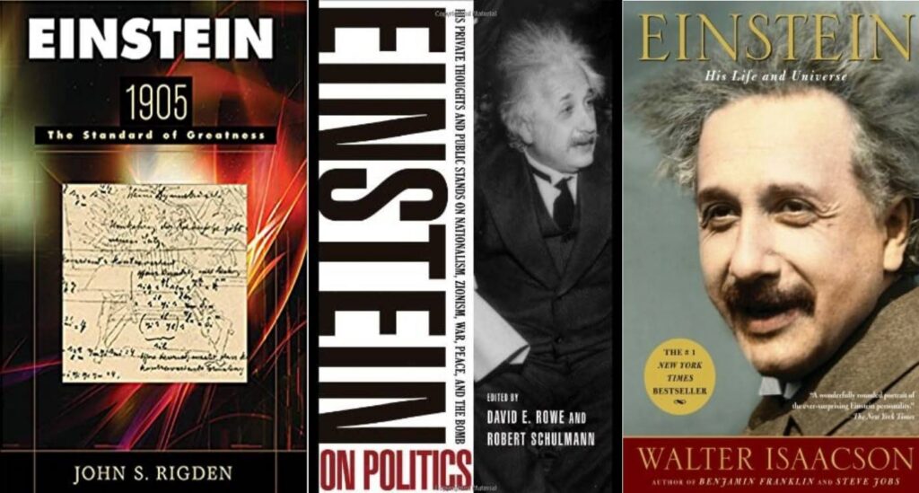 Albert Einstein este cunoscut drept o minte strălucită care a revoluționat lumea fizicii și nu numai. Una dintre personalitățile care inspiră sute poate mii de oameni de aproape un secol de la apariția sa pe scena lumii. De-a lungul timpul s-au scris multe cărți despre omul din spatele cercetătorului sau despre munca fizicianului. Mai jos este o listă cu unele dintre cele mai bune cărți în care sunt tratate aceste două subiecte.