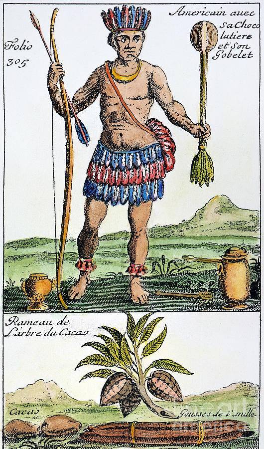 Când conchistadorii spanioli au intrat în contact cu civilizația aztecă, au întâlnit băutura de cacao. De altfel, „ciocolată” este derivat din cuvântul xocolātl, care înseamnă „apă amară” în Aztec. Deși ciocolata își are originile în limba aztecă (cunoscută oficial ca Nahuatl), s-a sugerat că aztecii ar fi moștenit rețeta de la civilizațiile mezoamericene anterioare, cum ar fi mayașii sau olmecii.