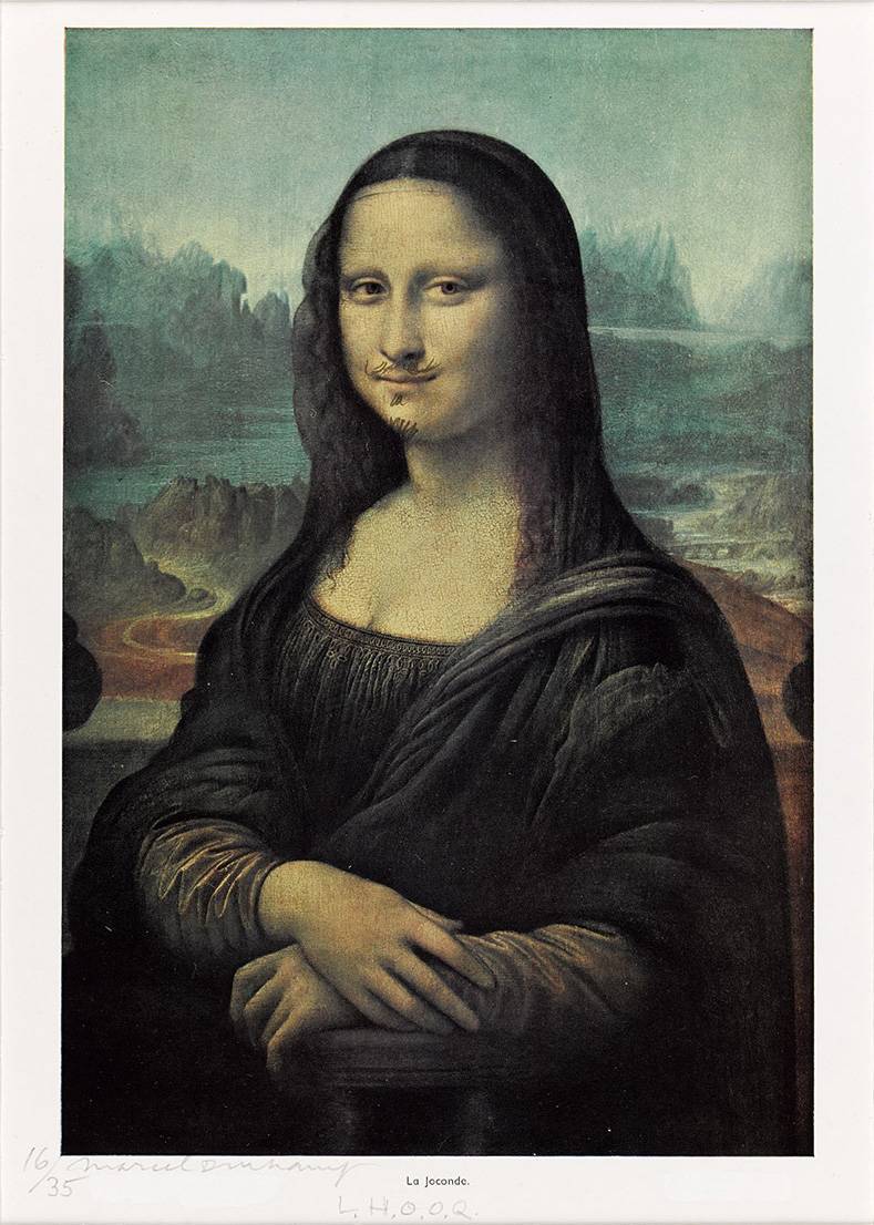 Duchamp era cunoscut pentru popularizarea acestui tablou prin această mică glumă, care a fost un mod foarte simplu de a redimensiona un simbol al culturii occidentale într-un punct în care cultura clasică părea să fie depășită. Un obiect cotidian care este reinventat de un artist și plasat într-un cadru rigid, o atmosferă de mare cultură, o galerie. În acest caz, obiectul găsit a fost o reproducere a cărții poștale a Mona Lisa pe care Duchamp a folosit un creion pentru a adăuga o mustață, o capră și un nou titlu riscat. Numele „L.H.O.O.Q. este un joc de cuvinte care, atunci când este pronunțat în franceză, sună ca Elle a chaud au cul.