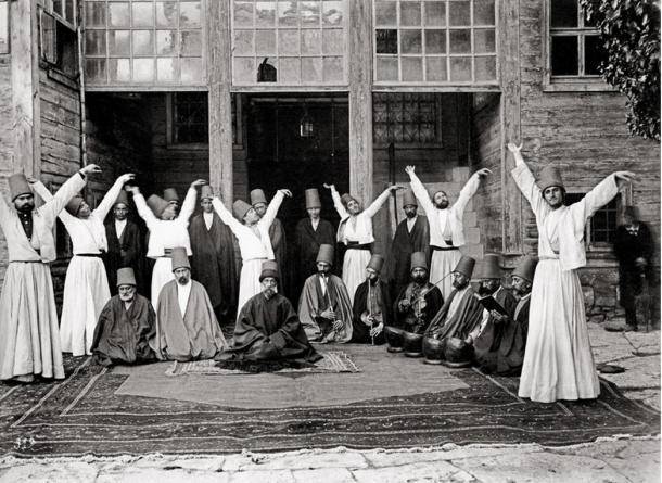 Derviși rotitori în Casa Galata Mawlawi (Imperiul Otoman), 1870
