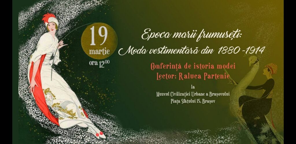 Vești bune pentru iubitorii de cultură care vor să aibă parte de un weekend special. Muzeul Civilizației Urbane a Brașovului va găzdui conferința de istorie a modei, denumită sugestiv „Epoca marii frumuseți: Moda vestimentară din 1880-1914”. Evenimentul este organizat astăzi, 19 martie 2022, de la ora 12:00.