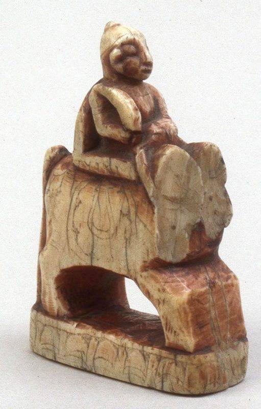 Piept de fildeș, un bărbat așezat pe doi cai, secolul al XVII-lea, India, prin British Museum, Londra