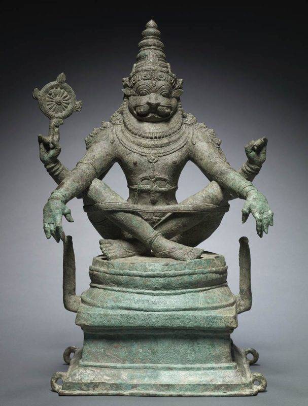 Yoga Narasimha într-o poziție disciplinară puternică, Vishnu în Avatarul său Man-Lion, 1250 CE, India de Sud, prin Yoga: Expoziția de artă a transformării, Cleveland Museum of Art