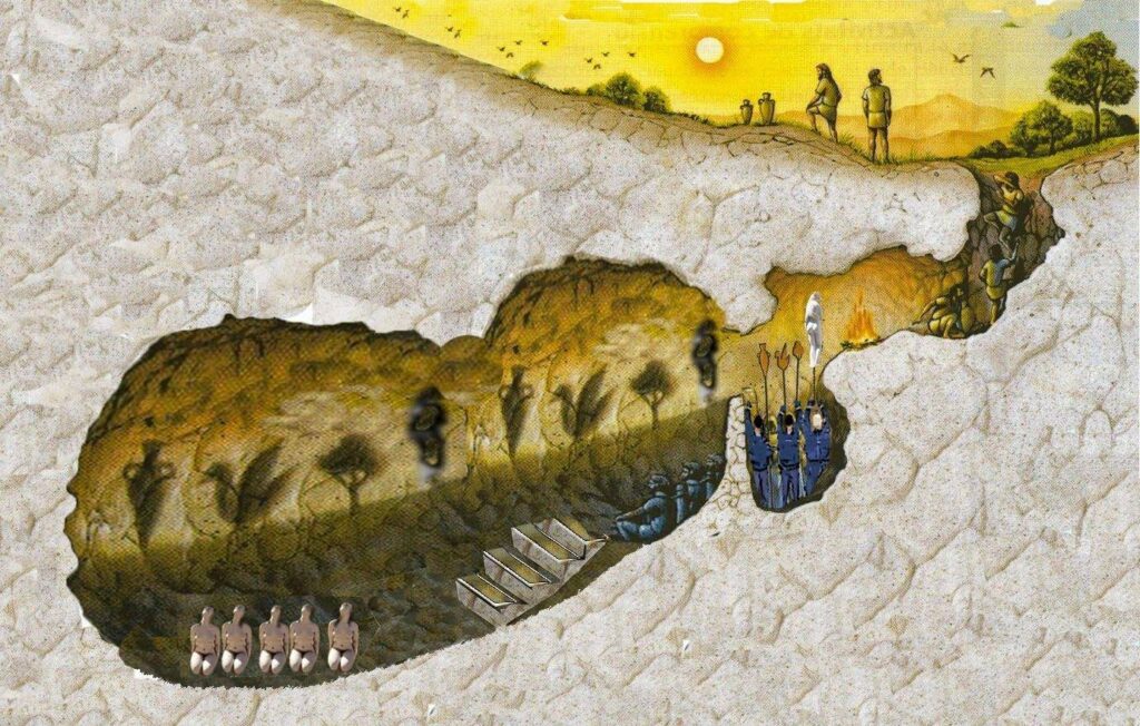 Alegoria umbrei folosită de Platon care este singura legătură dintre oamenii din peșteră și lumea reală poate fi regăsită într-una dintre cele mai importante opere ale Antichității. Pentru cei mai curioși dintre voi puteți găsi mitul foarte bine expus de Platon în cartea a VII-a a Republicii dialogul reprezintă centrul întregii opere a filosofului grec. Aici regăsim unele dintre cele mai importante concepte ale sistemului său filosofic. De la cunoaștere până la perceperea frumuseții. Alegoria folosește metafora prizonierilor înlănțuiți în întuneric pentru a explica dificultățile care se află între om și adevăr. Omul ajunge greu să ajungă un spirit drept și intelectual.