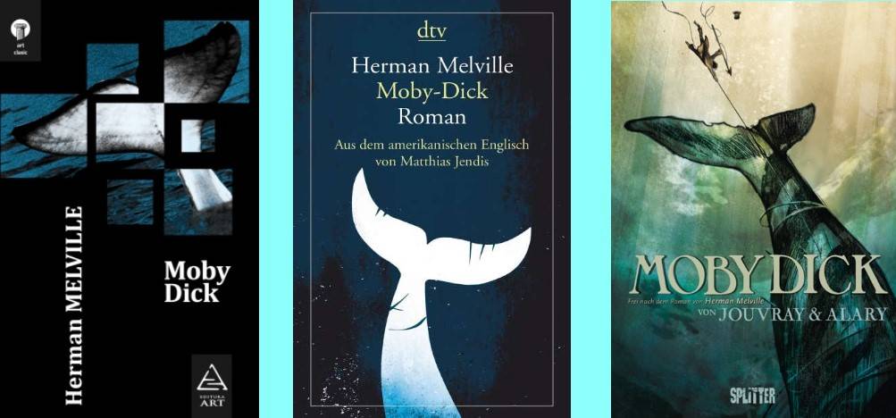 Romanul lui Herman Melville ne prezintă tema vânătorului devenit vânat. Ahab este un temut vânător de balene al cărui scop este să se răzbune pe un cașalot alb care îl lăsase fără un picior. Obsesia lui pare că transcendă limitele unei căutări, Ahab este în căutarea unei împliniri personale. Este asemenea unei căutări a absolutului. Acesta reprezintă întruparea omului înșelat de propriul destin. Atingerea scopului său, de a ucide balena, care aproape îl omorâse, nu va schimba nimic în el, este un fals scop.