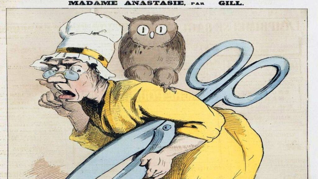 Punctul culminant al represiunii a venit atunci când, în 1830, Carol al X-lea a semnat cele patru ordonanțe de la Saint-Cloud, dintre care prima a suspendat din nou libertatea presei. Această măsură este declanșatorul celei a Treia Glorioase Revoluții. Revoluția a dus la înlocuirea foarte autoritarului Carol al X-lea cu vărul său, liberalul Louis-Philippe. Noua Cartă Constituțională prevedea că „francezii au dreptul de a publica și de a-și tipări opiniile, în conformitate cu legile” și restabilea „libertatea presei”. Dar această îmbunătățire s-a dovedit a fi de scurtă durată deoarece atacul lui Fieschi asupra lui Louis-Philippe din 28 iulie 1835 a oferit autorităților posibilitatea de a lua măsuri împotriva presei prin „legea necinstită” din 9 septembrie 1835. În acel moment, satiriștii descriau cenzura ca pe o bătrână care ține în mână foarfece uriașe și le-au poreclit „Anastasia” (foto).