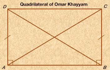 În 1077 d.Hr., Omar a finalizat o altă lucrare majoră, “Explicații ale dificultăților în postulate în elementele lui Euclid” . Se spune că intenția inițială a lui Omar a fost de a dovedi postulatul paralel (cunoscut și ca al cincilea postulat al lui Euclid). În schimb, el a ajuns să dovedească proprietățile figurilor în geometria non-euclidiană, contribuind astfel, deși întâmplător, la dezvoltarea acestei ramuri a matematicii. Această lucrare menționează, de asemenea, ceea ce este cunoscut astăzi ca Khayyam-Saccheri patrulater. Acesta este un patrulater cu două laturi egale perpendiculare pe bază. Deși Omar a fost primul matematician care a considerat acest patrulater, următoarea evoluție a conceptului, realizată de Giovanni Gerolamo Saccheri, a avut loc doar în secolul al XVIII-lea.