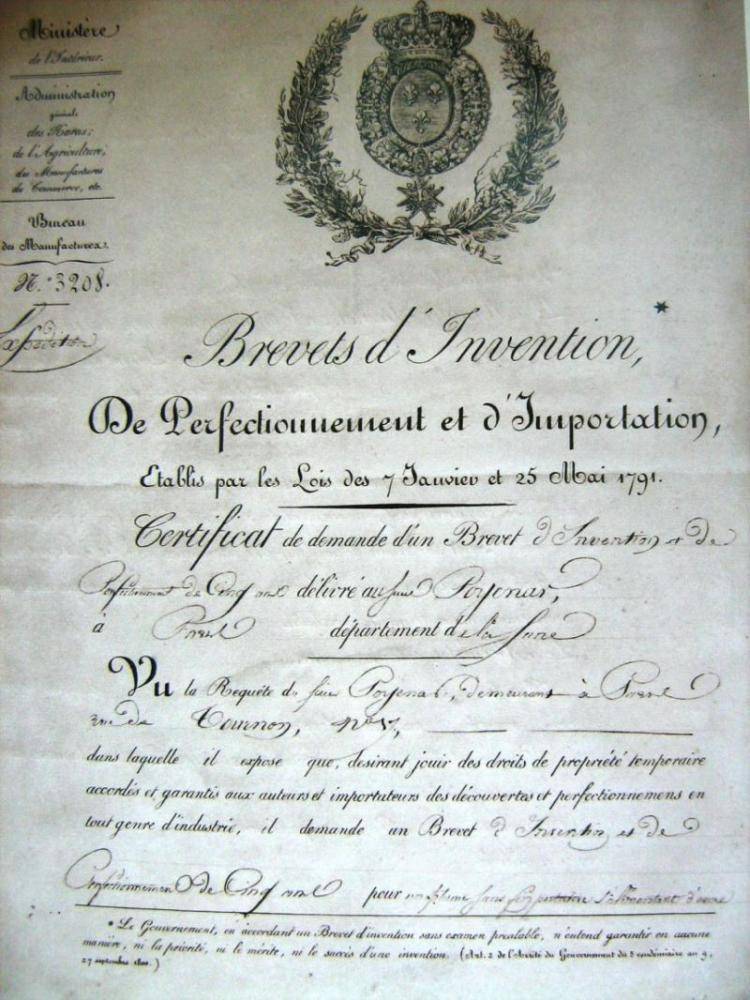„Petrache Poenaru, fiind student, se ocupa la Paris și cu scorniri în micile industrii practice. Am văzut cu mirare că la 25 mai 1827 el obține de la guvernul francez un brevet de invențiune pe cinci ani pentru un condei purtăreț, fără sfârșit, alimentându-se el însuși cu cerneală, un plume sans fin, portative, s’alimentant d’encre d’elle meme… Cine știe dacă, pe timpul când în Paris și-a bătut capul să scornească un asemenea condei portăreț și nesecat de cerneală, nu-și va fi adus aminte de nevoile ce trăgea, în tinerețile sale de calemgiu, întingând mereu condeiul în călimara de la brâu.”