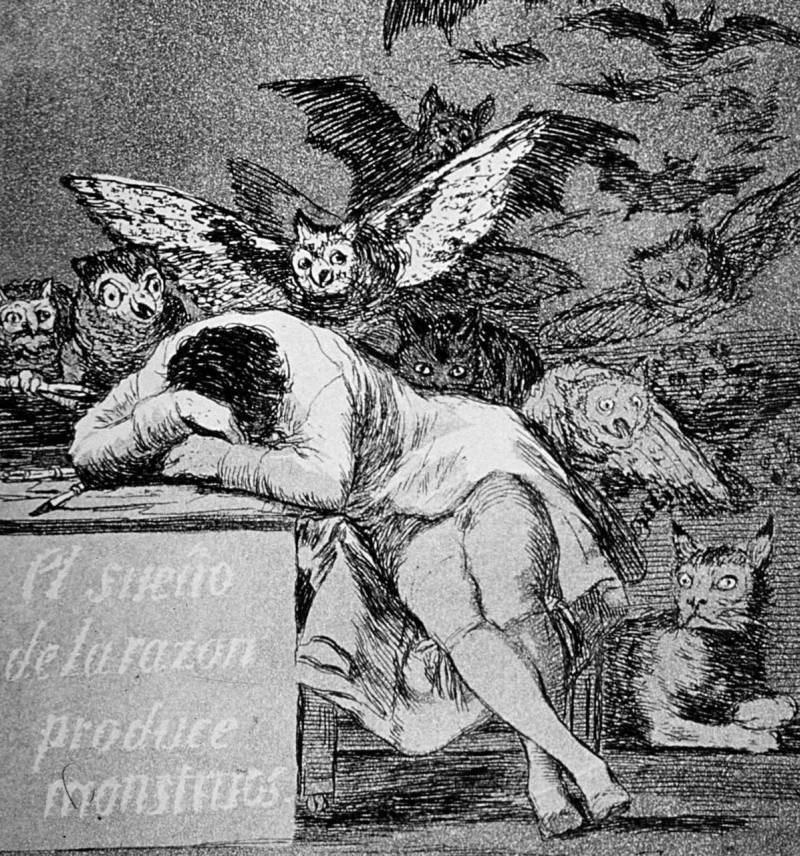Reprezentarea de către Goya a unui om adormit – artistul – asaltat de monștrii nopții, este o imagine a fragilității rațiunii, realizată la sfârșitul Iluminismului. A fost marea mișcare din secolul al XVIII-lea care a încercat să schimbe lumea cu enciclopedii, demonstrații științifice și primele fabrici . Opinia realistă, dar și plină de compasiune a lui Goya, este că rațiunea guvernează doar o parte din mintea noastră. Astfel că, dacă adoarme, rațiunea patrunde într-o zonă întunecată și trebuie să împartă lumea cu acele coșmaruri care se nasc din somnul ei. În zorii epocii moderne, această imagine reflectă vechile descrieri ale ispitelor Sfântului Antonie.