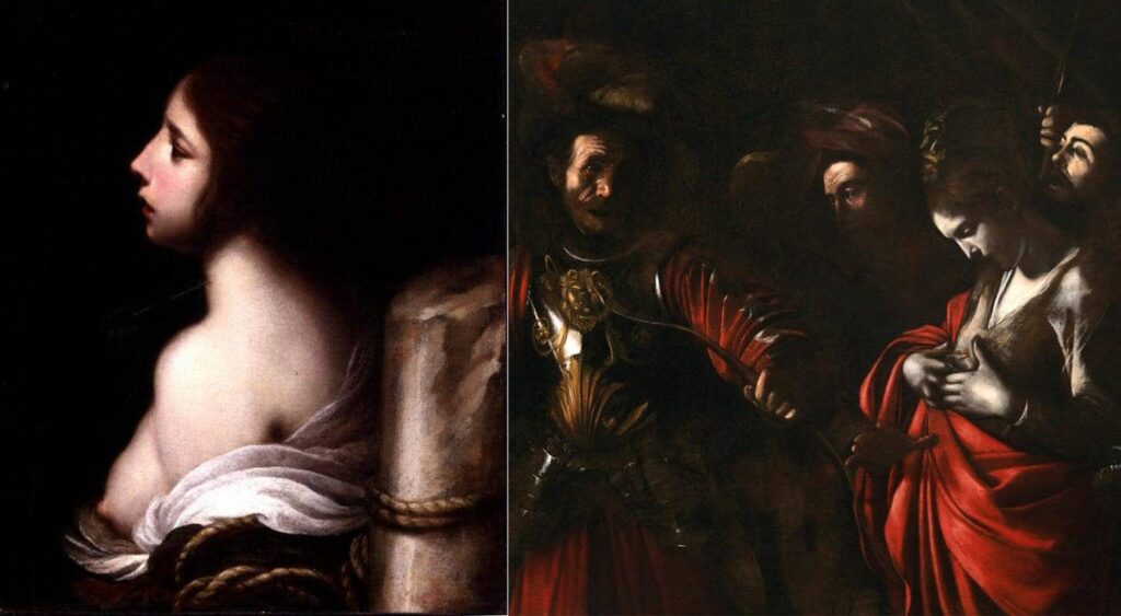 Manipularea vizuală a femeilor martiri supuse aceleiași soarte a fost foarte diferită. A face acest lucru ar echivala bărbații cu femeile, idee pe care catolicismul din secolul al XVII-lea nu a vrut să o încurajeze. Arta barocă a devenit o parte importantă a mașinii de propagandă, menținând strânsoarea continuă a puterii pe care o avea biserica. Indicarea așteptărilor societale plasate pe ambele sexe ale secolului al XVII-lea în arta barocă a fost efectiv subtilă. Acțiunile și credințele acestor sfinți au fost exemple în care publicul ar trebui să urmeze.