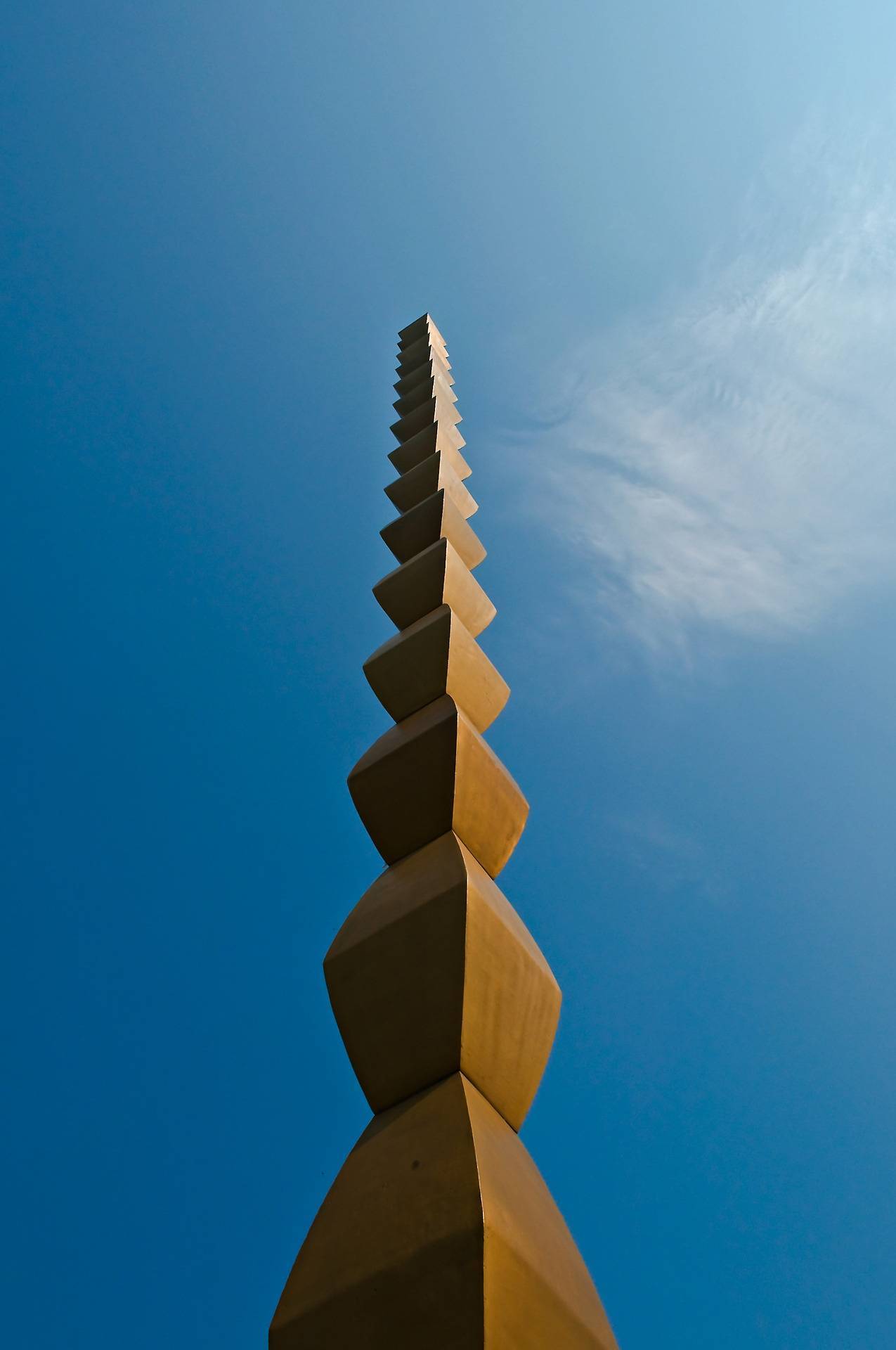 Creată inițial în 1918, Coloana Infinitului face referire la axis mundi, sau axa lumii, un concept important pentru credințele multor culturi tradiționale, care întruchipează legătura dintre cer și pământ. Această concentrare reflectă afinitatea puternică și persistentă a lui Brâncuși pentru sacru, cosmic și mitic. Coloana fără sfârșit tratează, de asemenea, o altă temă a operei lui Brâncuși, ideea infinitului, sugerată aici de repetarea unor forme romboide identice. Această imagine este cea mai faimoasă dintre coloanele nesfârșite ale lui Brâncuși, versiunea care a servit drept element central al memorialului sculptural tripartit pentru soldații căzuți în Primul Război Mondial, ridicat la Tirgu-Jiu, în 1938.
