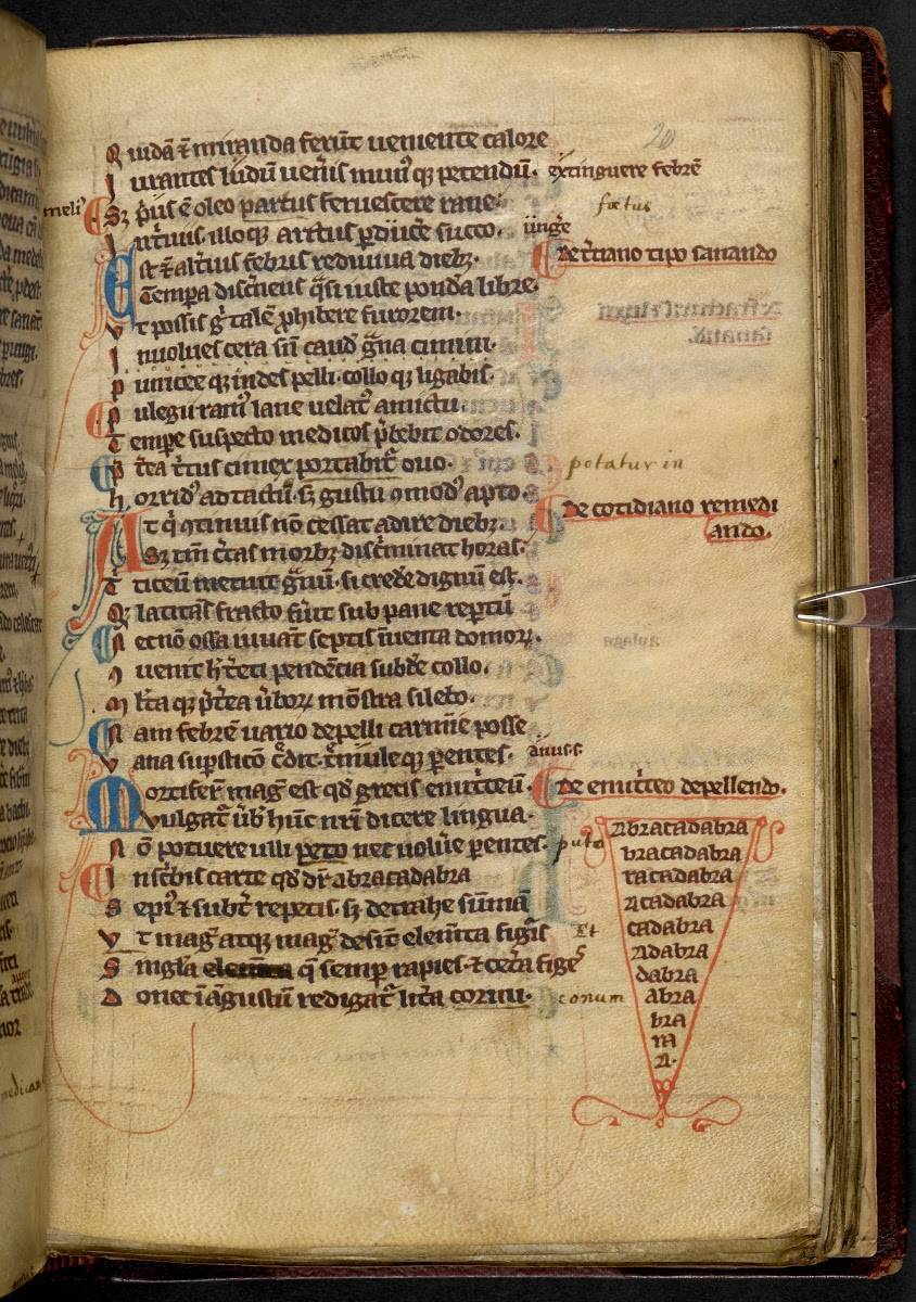 Utilizarea acestei piramide „Abracadabra” este menționată de scriitori în veacurile ulterioare, inclusiv de Rimmington Taylor din secolul al XVI-lea, care a scris ” The Troublesome Voyage of Capt. Edward Fenton”. Abracadabra se folosea în secolul al 18-lea, iar Daniel Defoe a scris în lucrarea sa din 1722, „Jurnalul anului ciumei”, că superstiția a fost, din păcate, aplicată în timpul acestei epidemii: