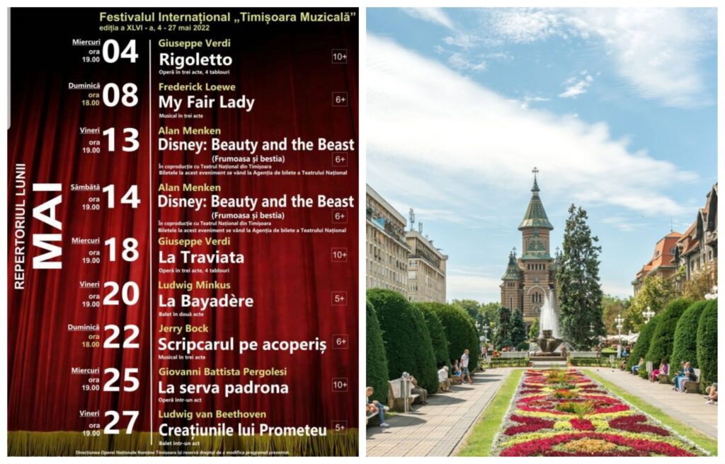 Opera Națională Română din Timișoara (ONRT) oferă iubitorilor de cultură nu mai puțin de zece spectacole, dintre care două de balet. Evenimentele culturale vor fi prezentate în cadrul celei de-a XLVI-a ediții a Festivalului Internațional „Timișoara Muzicală”, ce se va desfășura în perioada 4 – 27 mai.